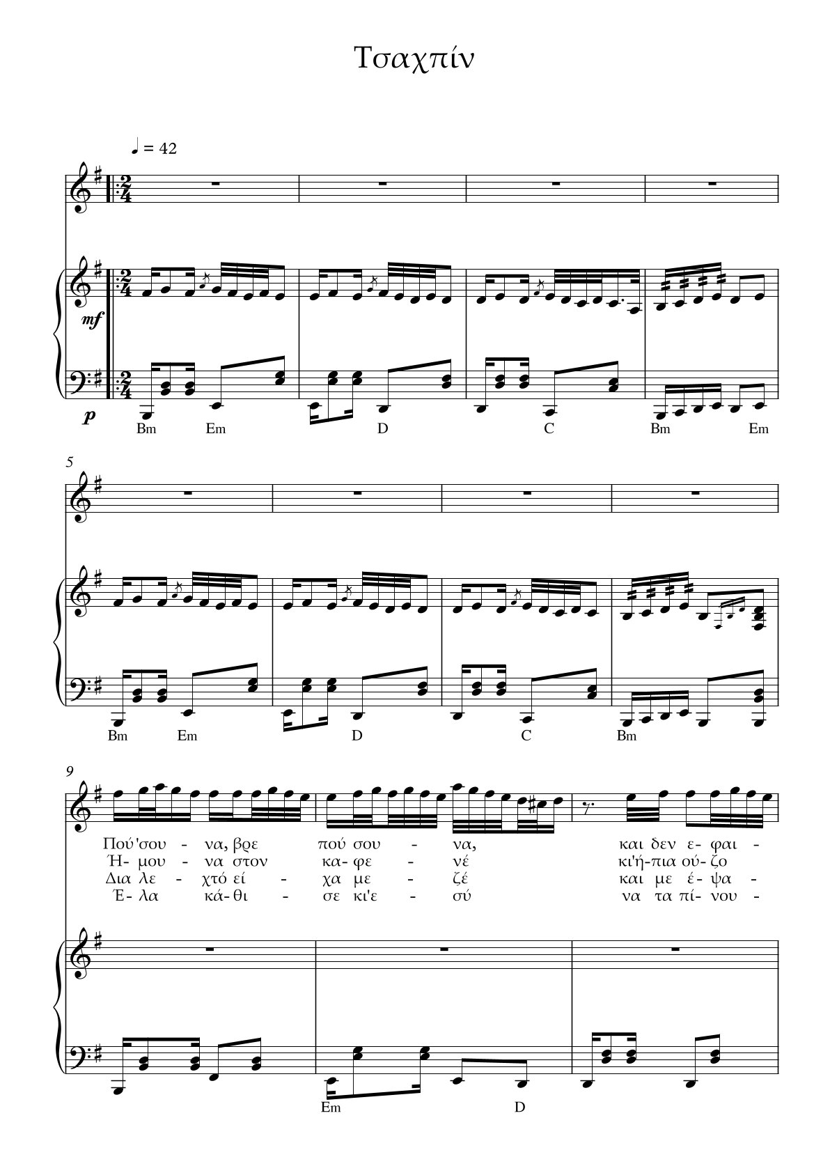 Μουσική Επιμέλεια : Πέτρος Παλαμούρας, Μουσικός Συνεργάτης : Πάνος Κοσμίδης. ΣΥΝΔΕΣΜΟΣ ΓΙΑ ΤΑ ΑΡΧΕΙΑ SIBELIUS 8 : https://drive.google.com/drive/folders/1wCryjv-Svfnq_6IFwHYmIBdOD0fPlR0o?usp=sharing